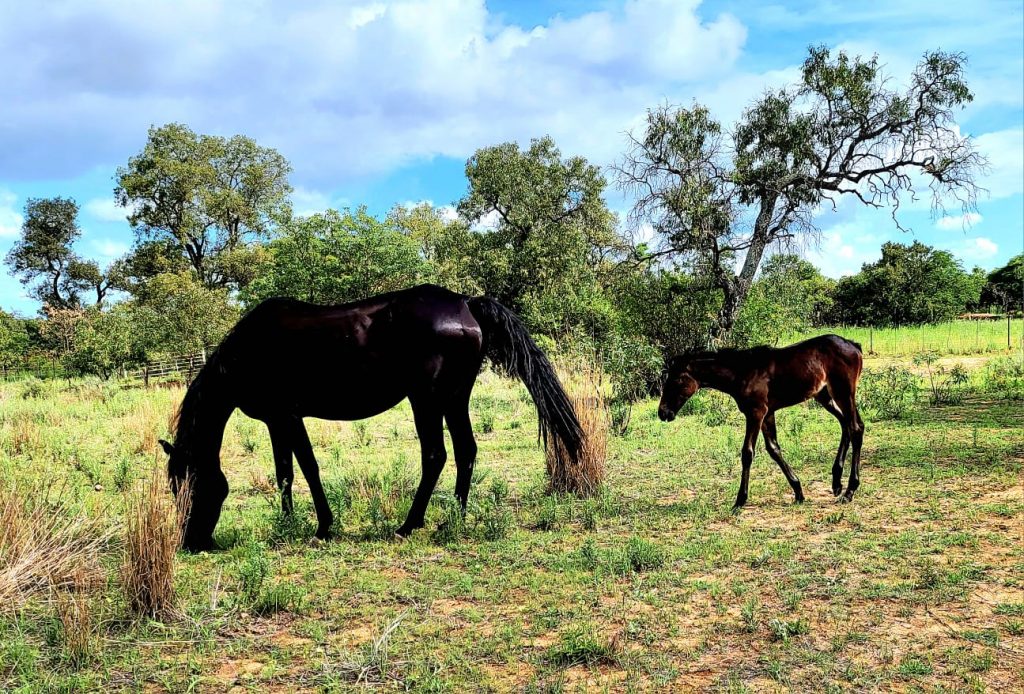On the ranch we work in closed contact with our stallions and brood mares in the breeding season that starts in October and ends in January. Our expected mares are foaling at the same time.